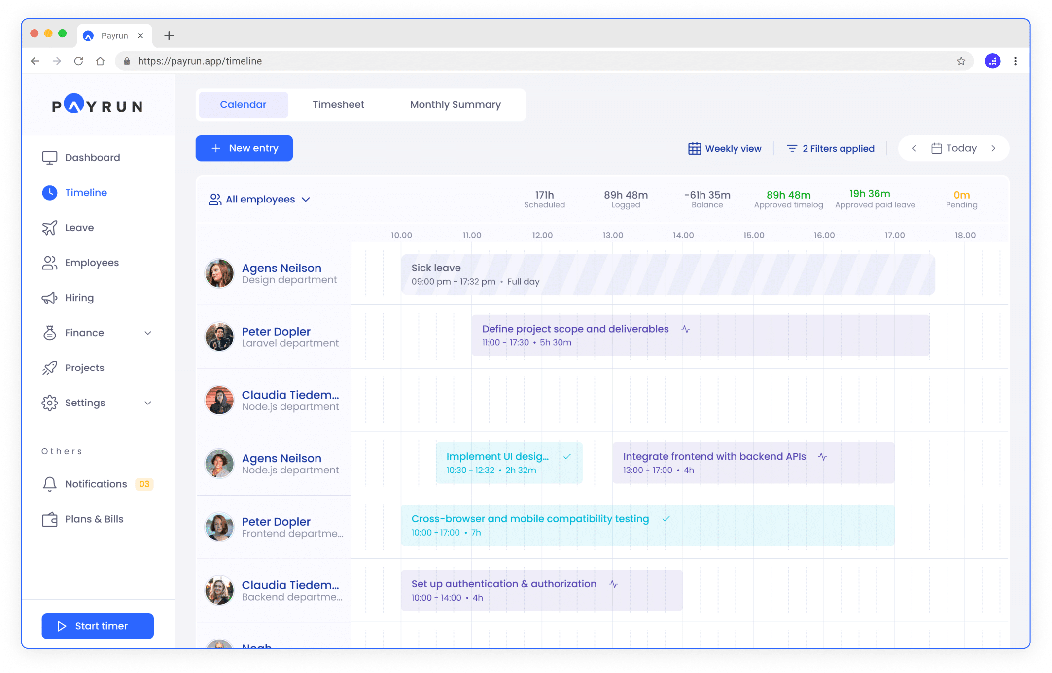 Payrun is a web-based human resource management system that simplifies HR management tasks such as employee management, hiring, and leave approval.