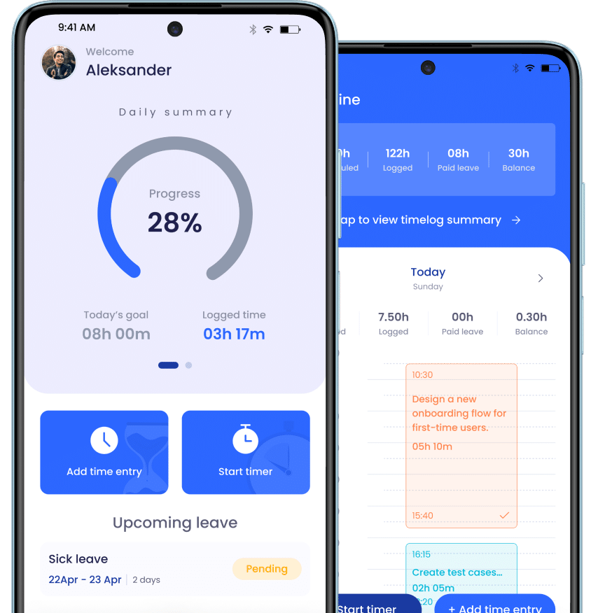 Users have the flexibility to record their working hours either by manually adding time entries or by initiating the timer functionality.